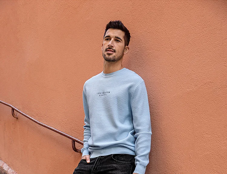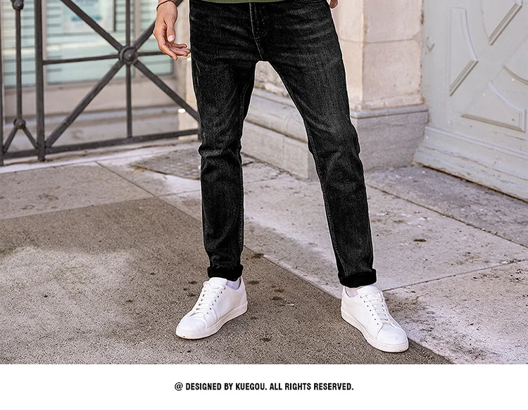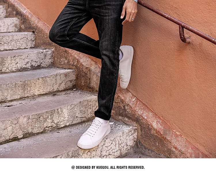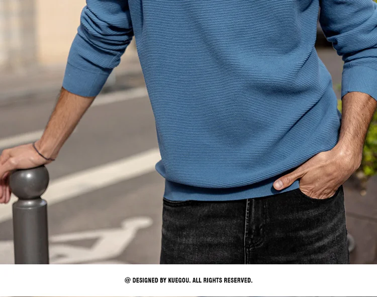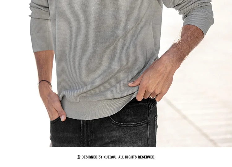 Мужской облегающий пуловер KUEGOU, черный однотонный Повседневный т...