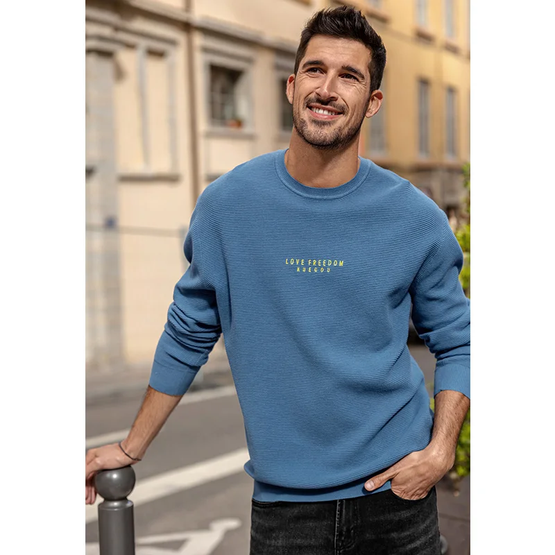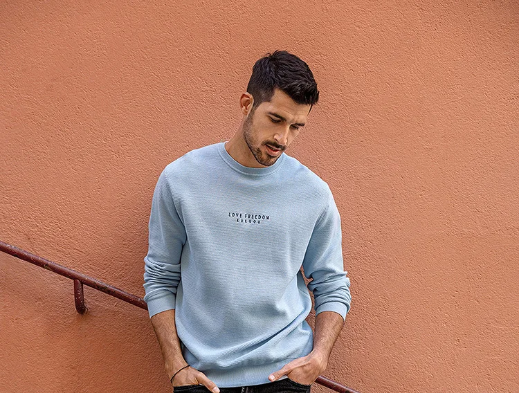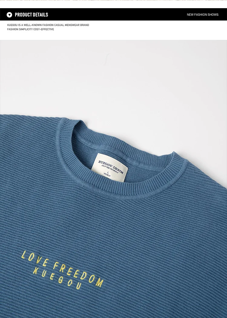 Мужской трикотажный свитер с вышивкой KUEGOU, черный трикотажный свитер с вышивкой, Осень-Зима 100%
