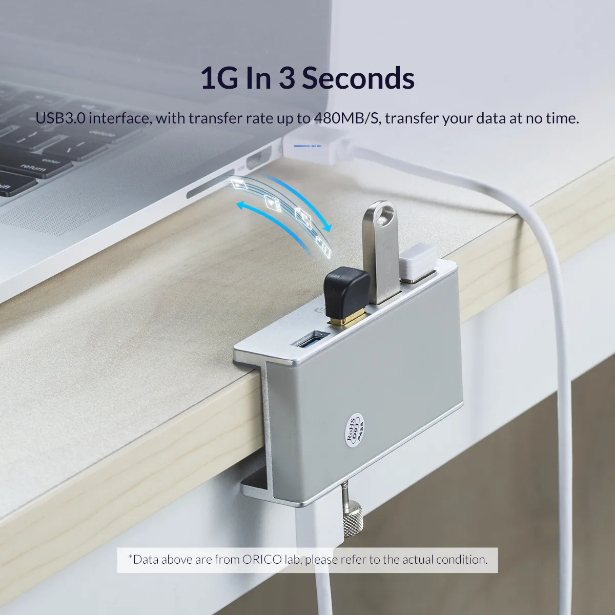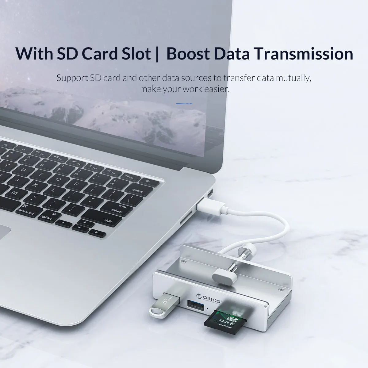 USB-разветвитель ORICO алюминиевый с 4 USB-портами и зажимом