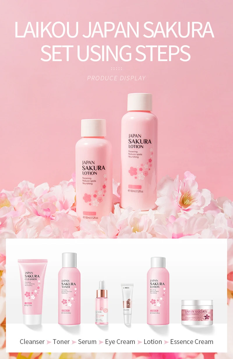 LAIKOU 4 шт. набор для ухода за кожей Сакура очищающее средство тон...