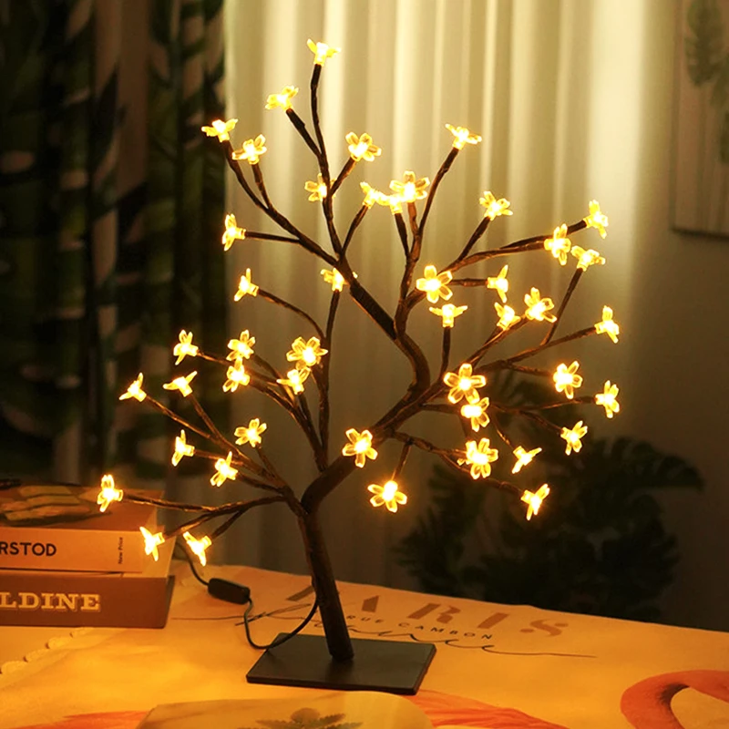 40 светодиодный, Рождественская лампа в виде цветущей вишни, медная проволока, сделай сам, бонсай, настольная лампа, ночсветильник, декоративные светильники для дома