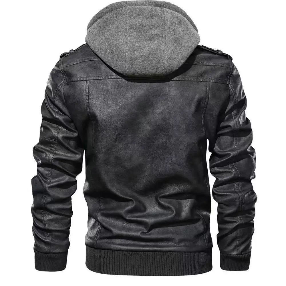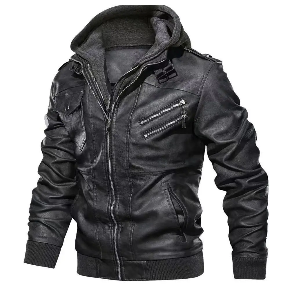 Мужская кожаная куртка, мужское зимнее мотоциклетное пальто со съем...