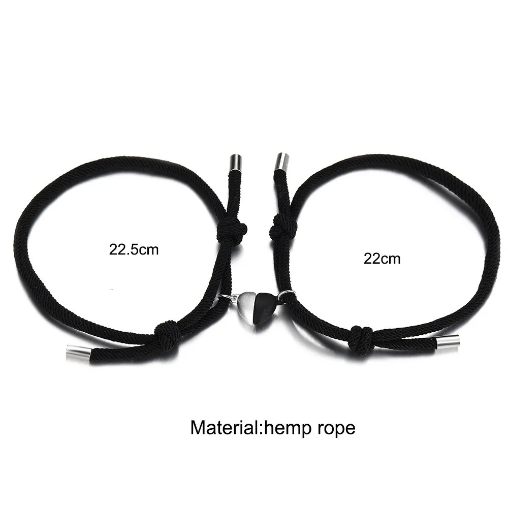 Черная пеньковая веревка, магнитный браслет ручной работы для влюбл...