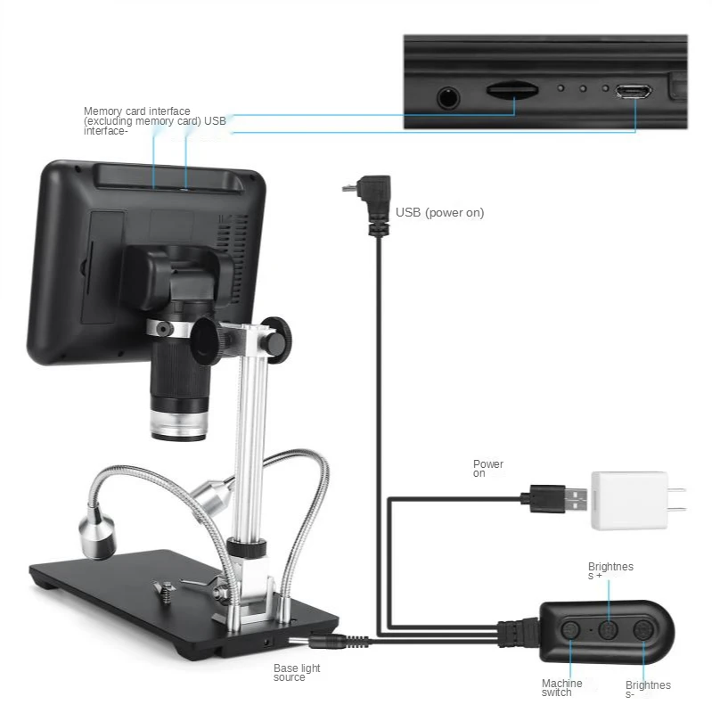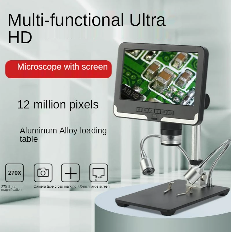 7-дюймовый цифровой электронный микроскоп с высоким разрешением, 12 миллионов, с экраном