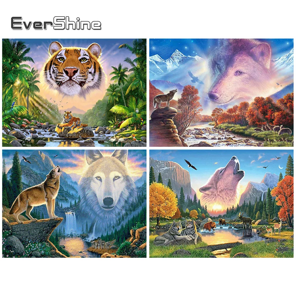 Evershine Алмазная мозаика волки 5D DIY полная площадь Алмазная вышивка тигр вышивка крестом наборы Алмазная Живопись животные украшения для дома