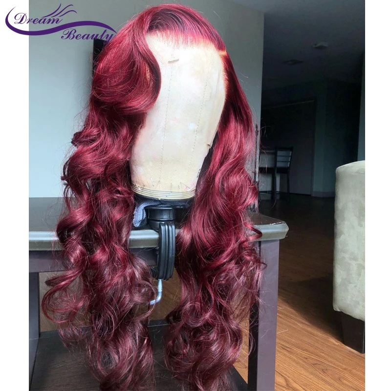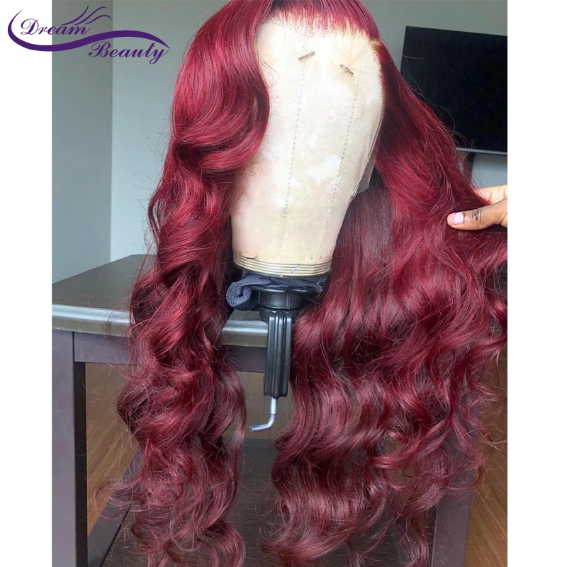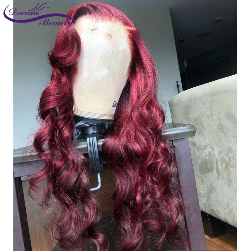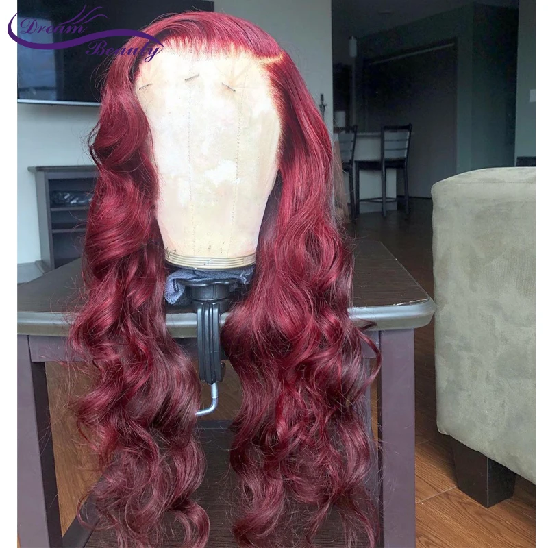 13*4 кружевной передний парик 99J бразильские Remy Волнистые кружевные передние человеческие волосы парики для женщин человеческие волосы парик предварительно выщипанные мечта красота