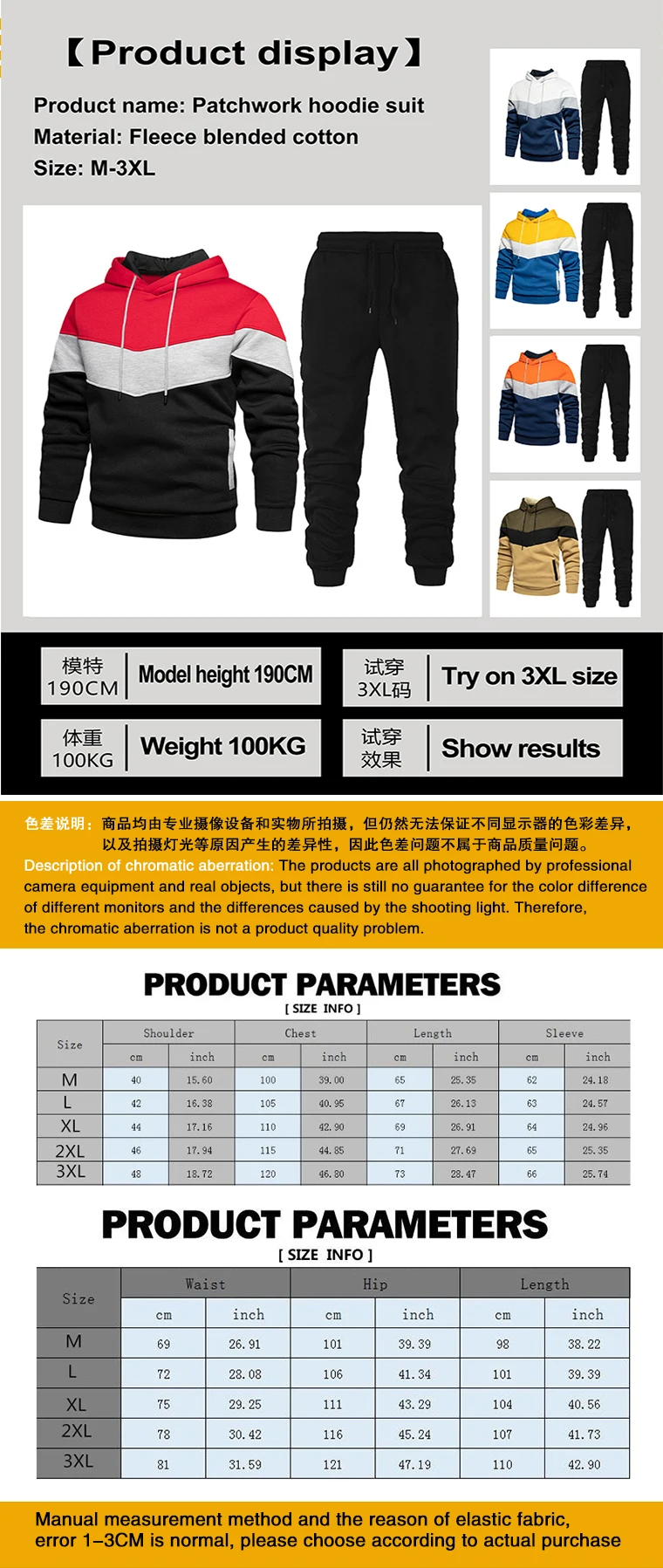 Мужской свитер в стиле пэчворк с капюшоном, спортивный костюм, повс...
