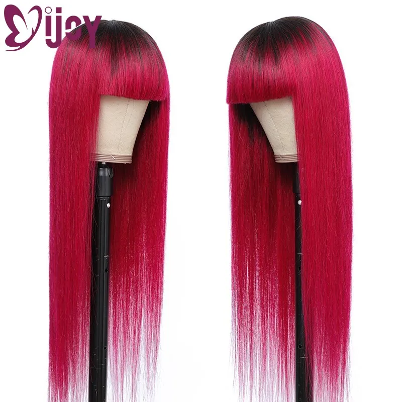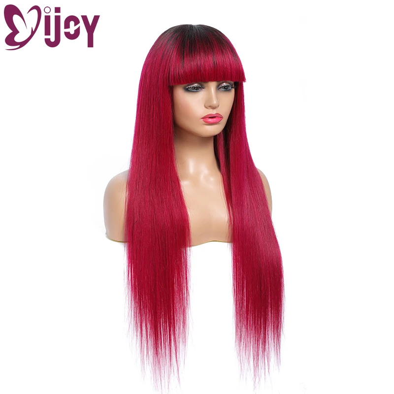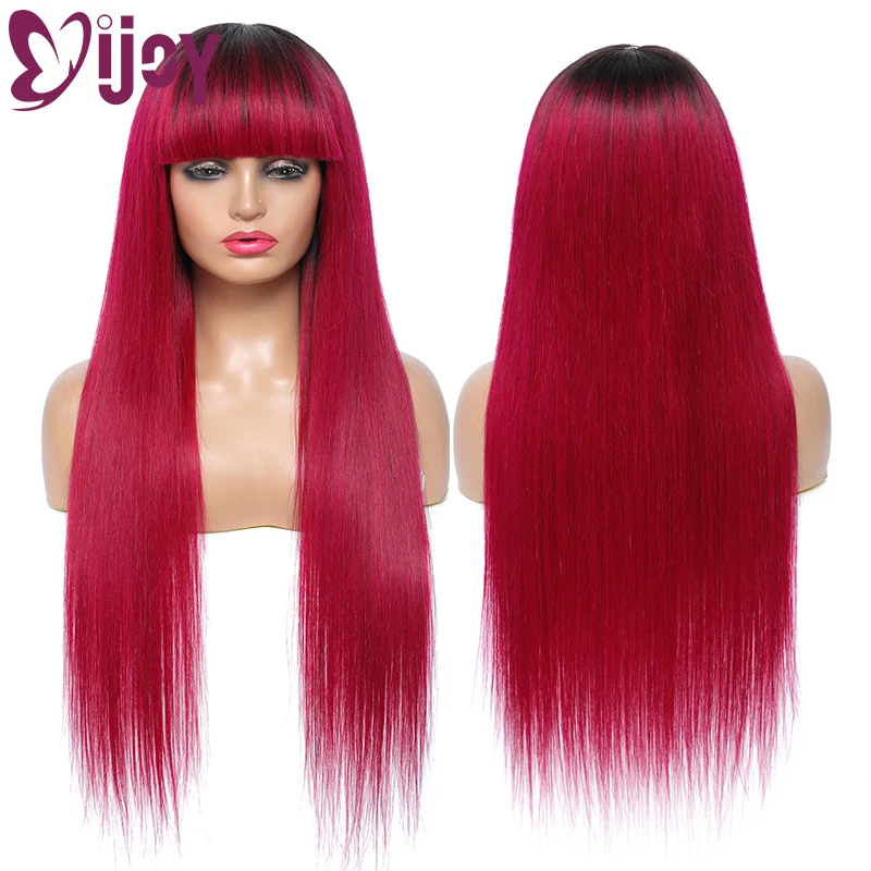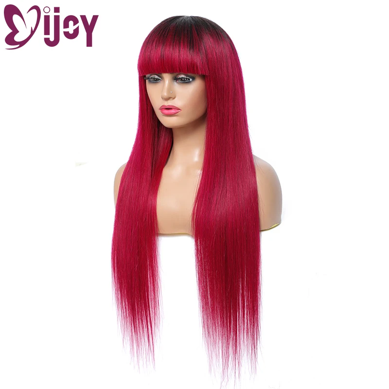 IJOY прямые человеческие волосы парики с челкой для черных женщин Omber 99Jбордовые бразильские волосы Remy полностью машинная работа парик IJOY