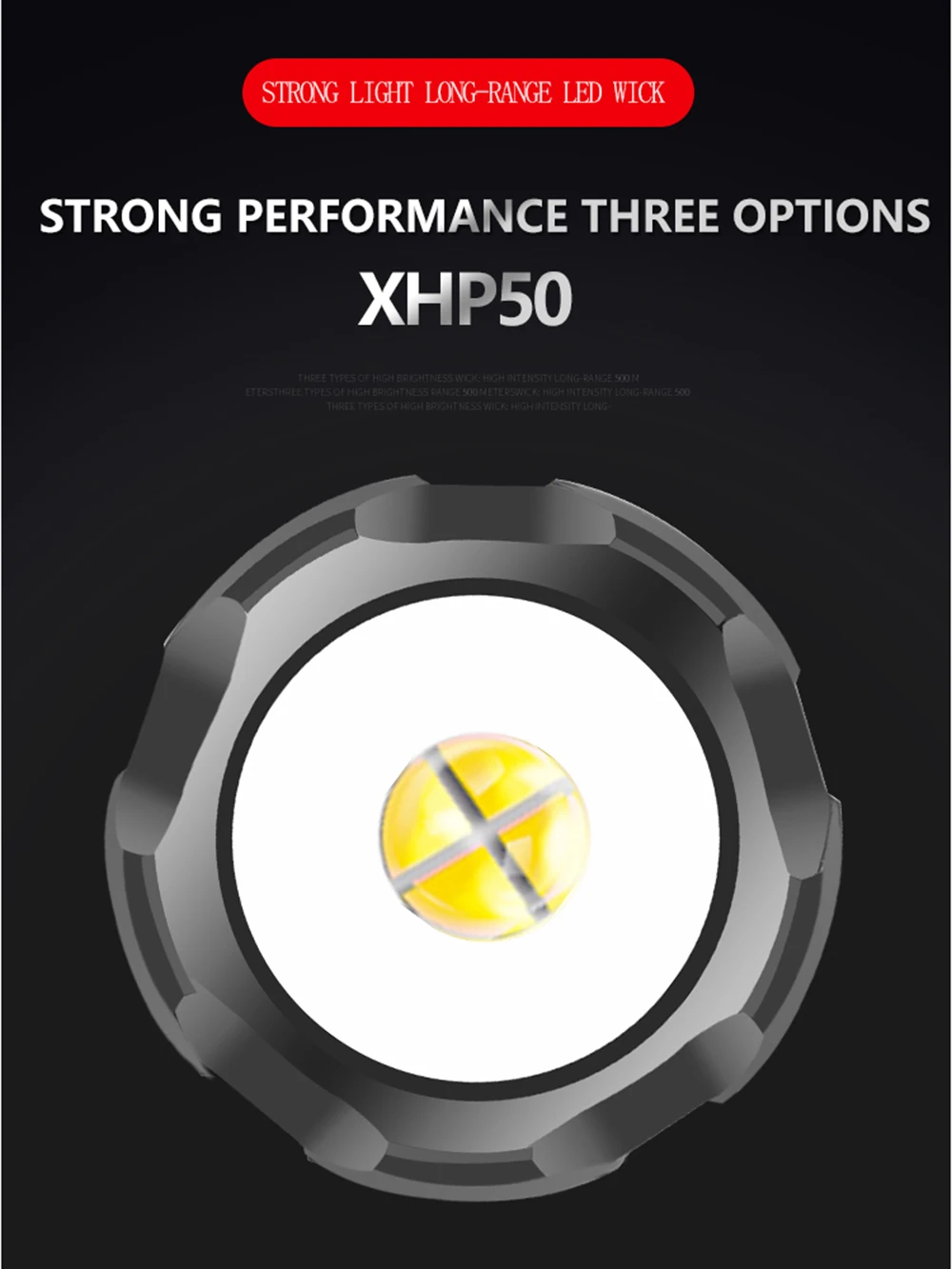 Фонарик светодиодный, 5 режимов освещения, 18650, 20 Вт, 3,7 в, P70 P50, для охоты, Путешествий, Походов, Кемпинга