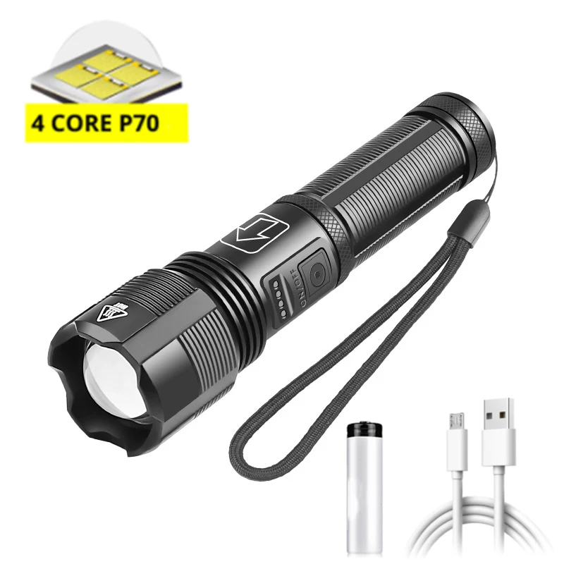 Параметры: Источник питания: батарея Мощность: 20 Вт В: 3,7 в Сфера применения: пеший туризм, кемпинг, Самооборона, обучение, поиск, охота, Ежедневное ношение, Ночная езда, спелеология, ночная рыбалка, патруль Максимальная дальность: 200-500 метров Лампа: XHP50/XHP70 Размер продукта: 15,7x4x2,8 см Материал: алюминиевый сплав и АБС Переключатель: нажмите переключатель Батарея: 1x18650/3 x AAA Способ зарядки: зарядка через micro USB Положение шестерни: 5 передач с: сисветильник-средсветильник-слабысветильник-вспышка-SOS Метод масштабирования: телескопический зум Класс водонепроницаемости: Водонепроницаемость Люмен: 800-1000 люмен Светильник индикатор: светильник катор батареи: 100%-75%-50%-25% Особенности: телескопический зум, дисплей батареи Емкость аккумулятора: 1500 мАч Особенности:1. Идеально подходит для охоты, приключений и других приключений на свежем воздухе.2. Он имеет функцию напоминания о питании, вы можете узнать состояние питания фонарика в любое время и в любом месте3. Водонепроницаемость, нельзя помещать в воду4. Подходит для работы, охоты, скалолазания, рыбалки, кемпинга, активного отдыха и т. д.5. Заднюю крышку необходимо полностью затянуть, пока ее нельзя повернуть, иначе она может не включаться. Посылка входит:О: 1 фонарик P50 + 1 задний трос + 1 коробка + 1 USB-кабель + 1 аккумулятор 18650B: 1 фонарик P70 + 1 задний трос + 1 коробка + 1 USB-кабель + 1 аккумулятор 18650
