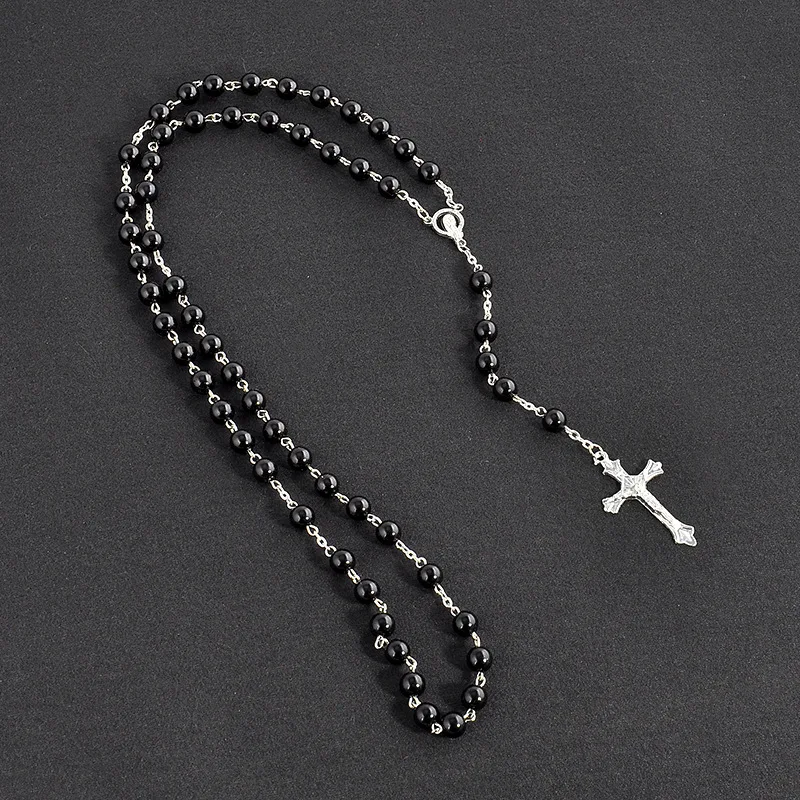 Новая мода ручной работы круглая стеклянная бусина католические четки качество ожерелье из бисера крест бусины крест религиозные подвески ожерелье