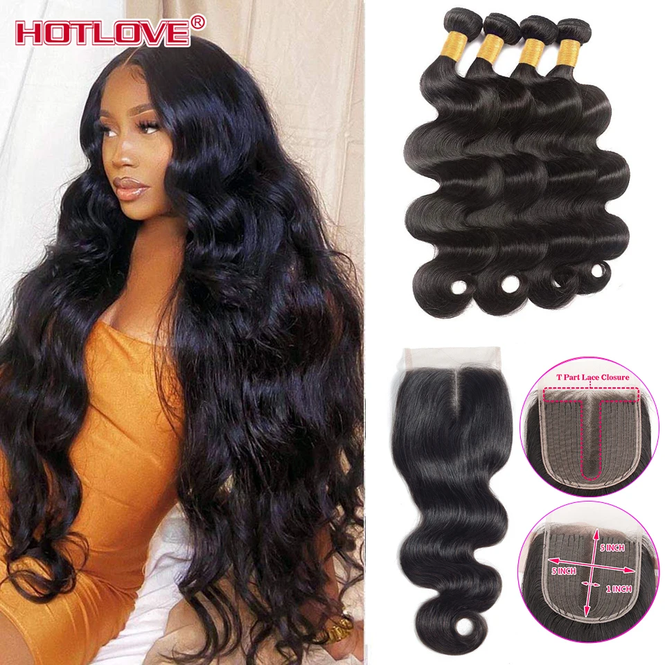 Волнистые человеческие волосы в пучках с закрытием, бразильские вол...