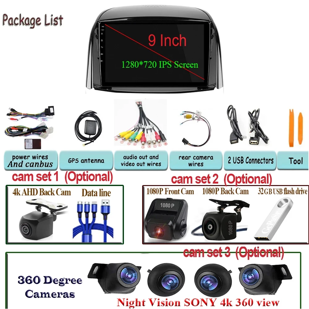 Автомобильный стерео Мультимедийный проигрыватель 360, камера для H...