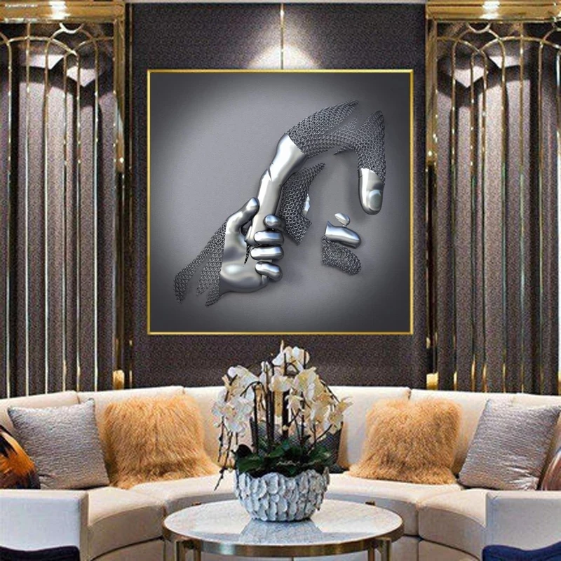 3D холст художественные плакаты и принты абстрактные металлические кулак лицо картина Современная Настенная картина для гостиной интерьера