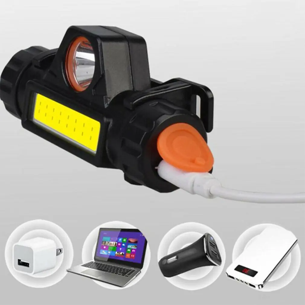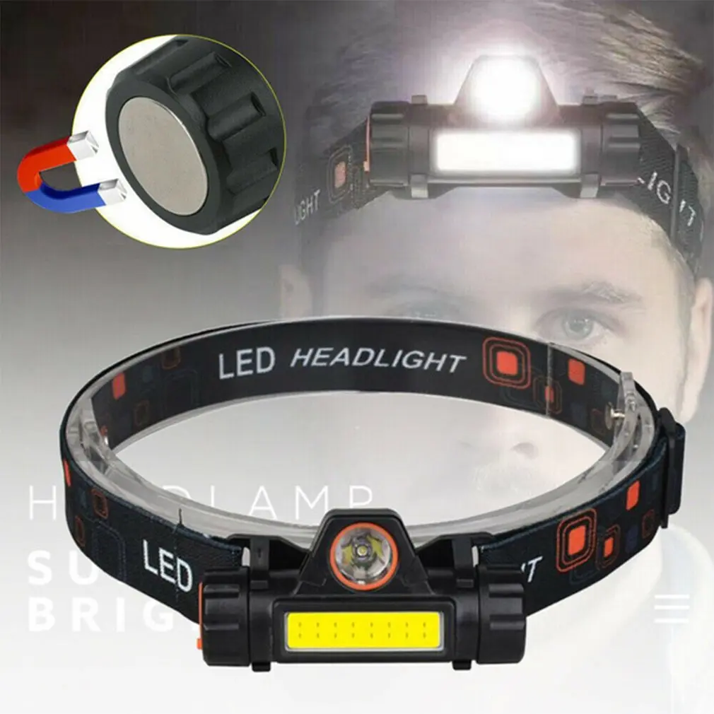 Портативный Миниатюрный светодиодный налобный фонарь XPE + COB, фонарь для кемпинга и рыбалки с зарядкой от USB
