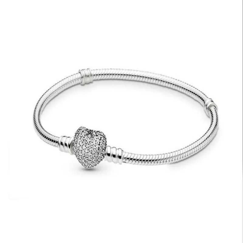 2021 Новые поступления 925 серебряный браслет с сердцем T-Bar змеин...