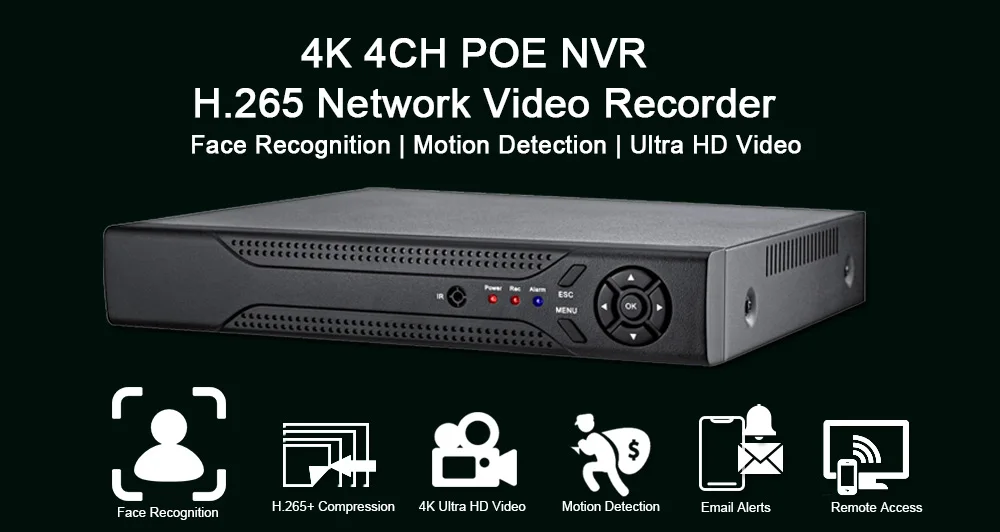4CH POE NVR ResolutionH.265 4CH 4K NVR