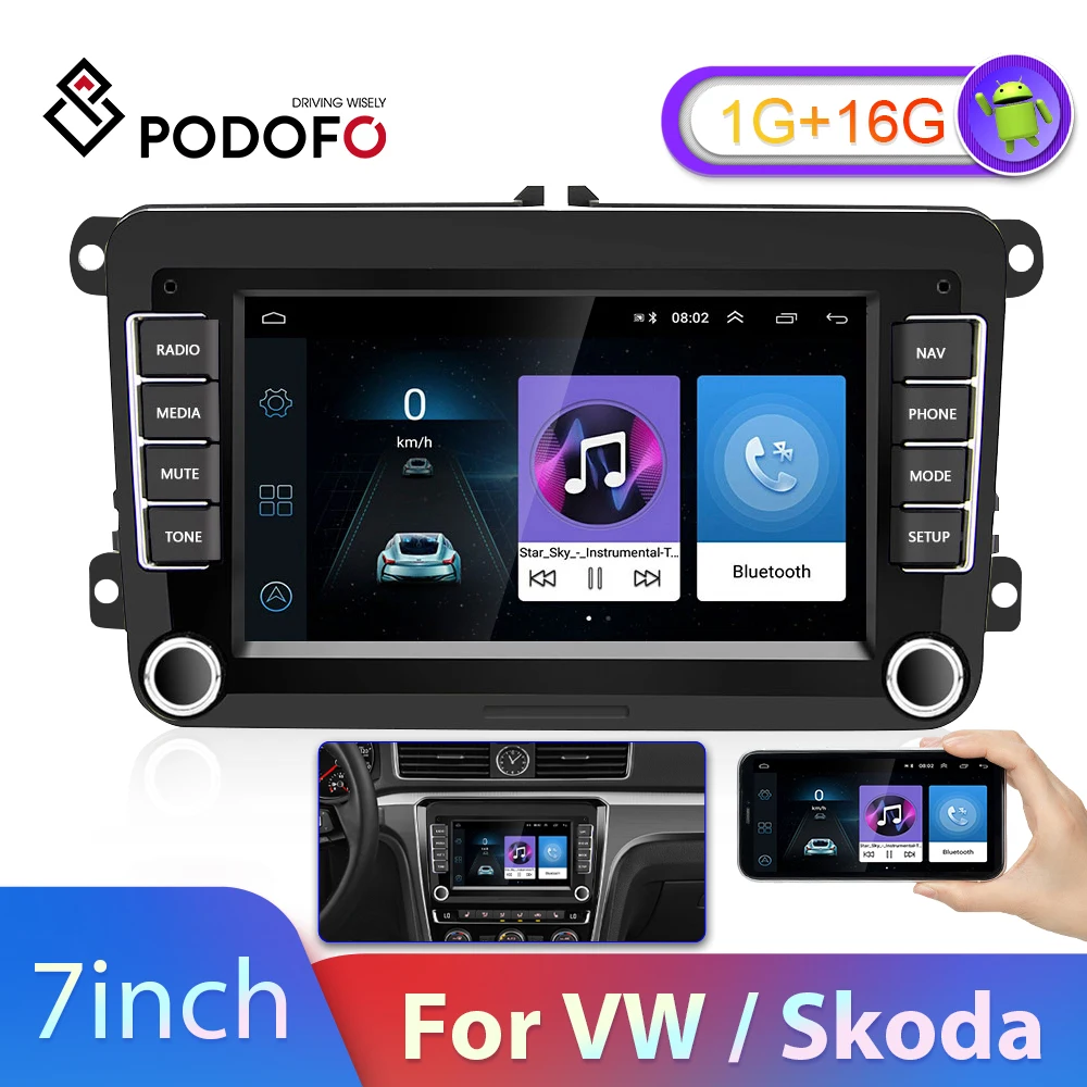 Автомагнитола Podofo Canbus, стерео-система на Android, с GPS, для VWVolkswagen, Skoda Octavia, golf 5, 6, touran, passat B6, polo, Jetta, типоразмер 2 Din