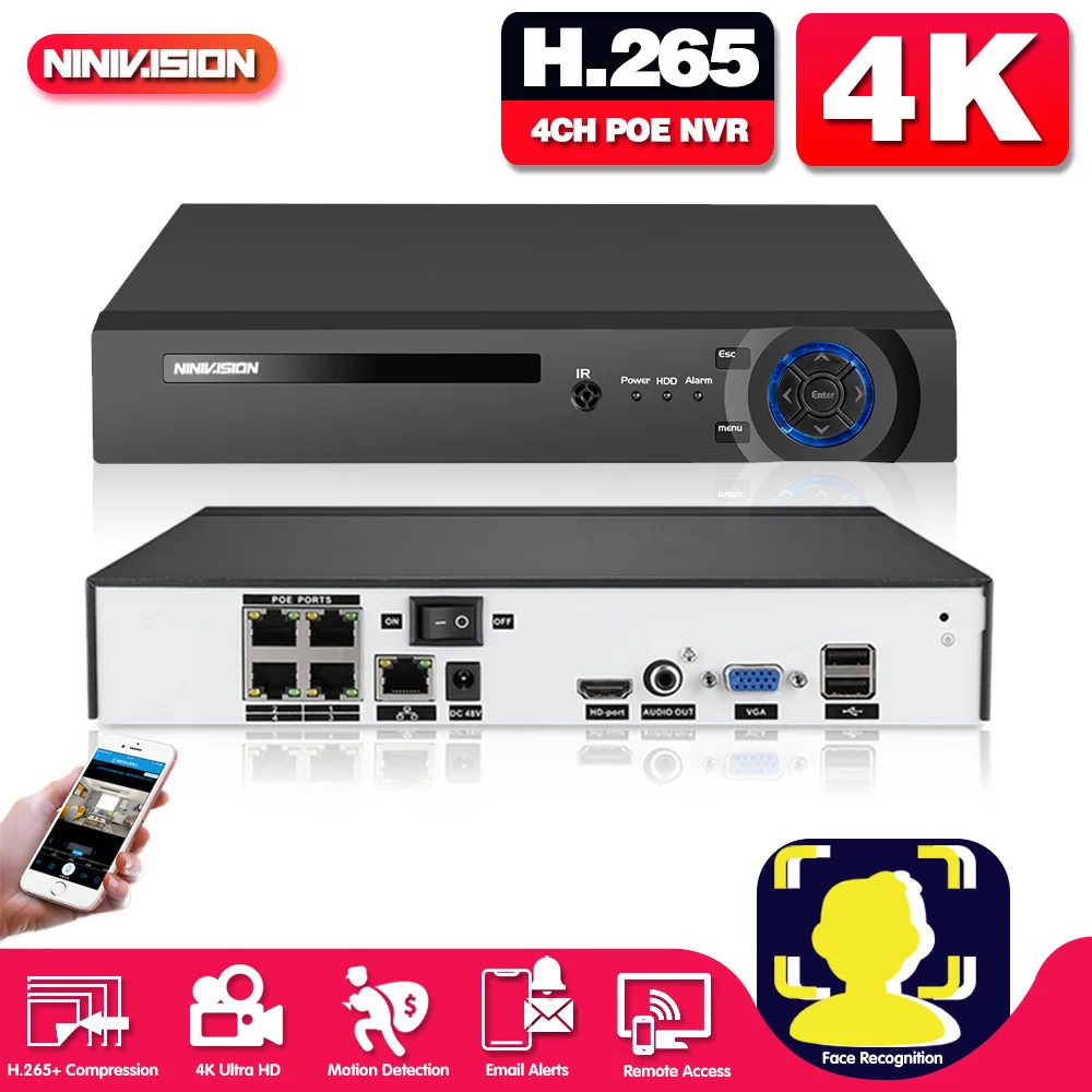 4CH POE NVR ResolutionH.265 4CH 4K NVR