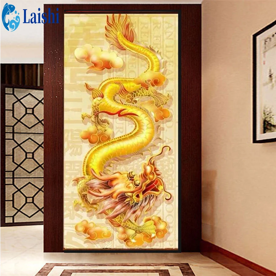 Полноразмерная Алмазная 5D картина с золотым Драконом, алмазная живопись, 3D вышивка крестиком, украшение для вышивки