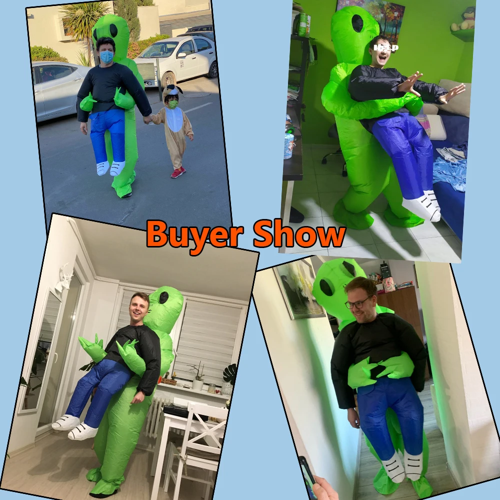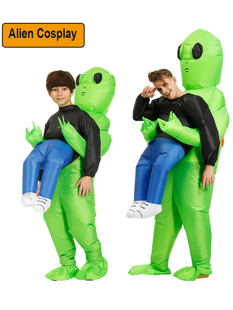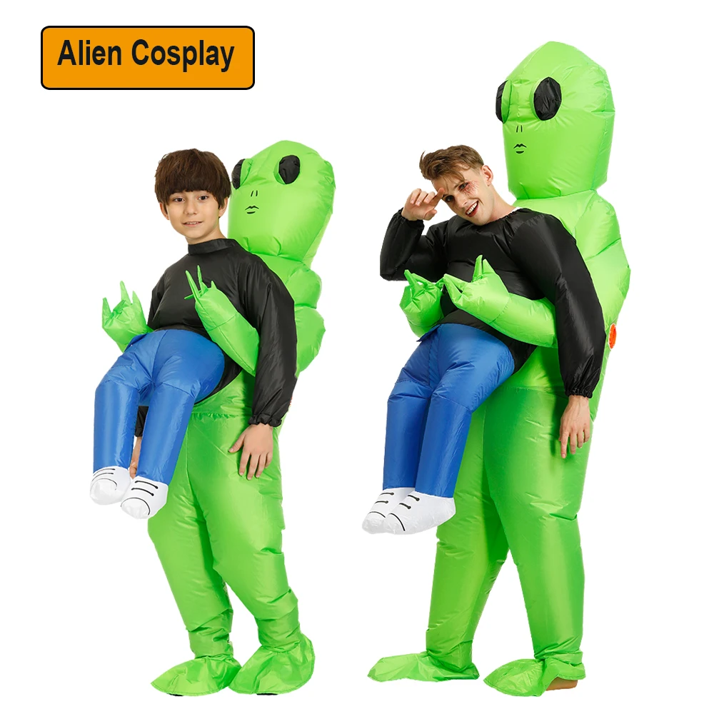 Надувные костюмы для взрослых и детей, Хэллоуин зеленый костюм косплей, аниме, инопланетянин, Рождество, Пурим, вечеринка, Disfraz, подарки на день рождения