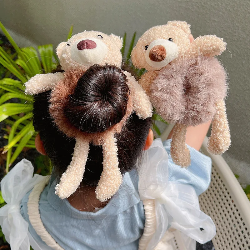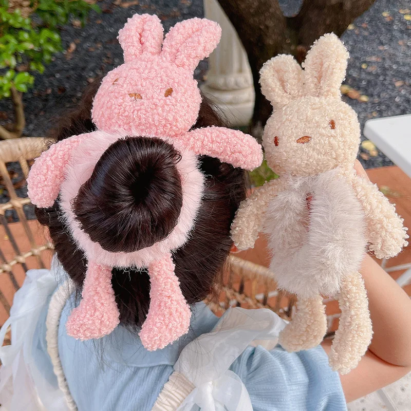 Резинки для волос с милым медведем, Кроликом, игрушкой, из искусственного меха, эластичные резинки для волос для девочек, женские резинки для прически конский хвост, резинки, зимние аксессуары для волос
