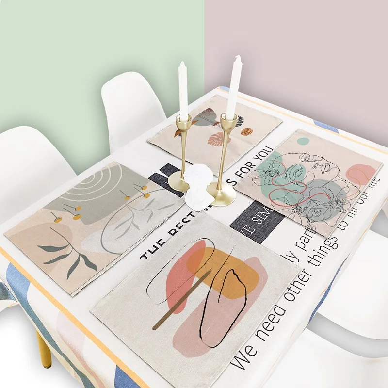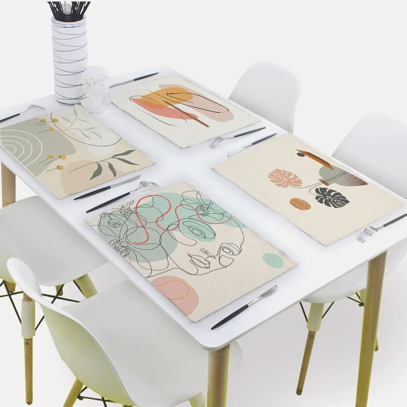 Хлопковые и льняные салфетки с геометрическим принтом, 42x32 см, 21...