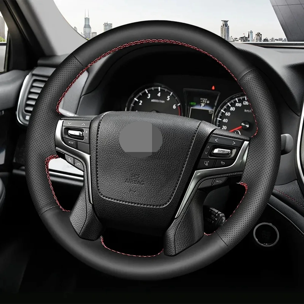 Чехол рулевого колеса автомобиля Нескользящая черная натуральная кожа для Toyota Land Cruiser 2016 2017 2018 Land Cruiser Prado 2019