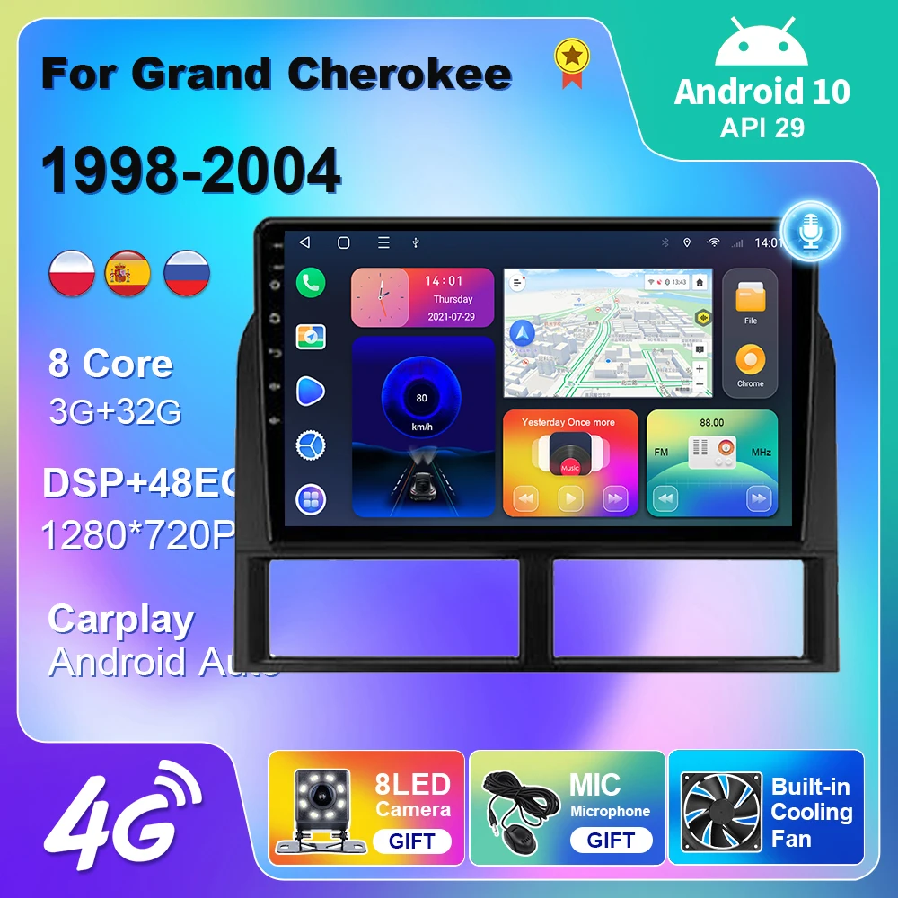 Автомагнитола для Jeep Grand Cherokee II WJ 1998-2004, мультимедийный видеоплеер для CarPlay, Android, автонавигатор, GPS, аудио, 2 din, DVD