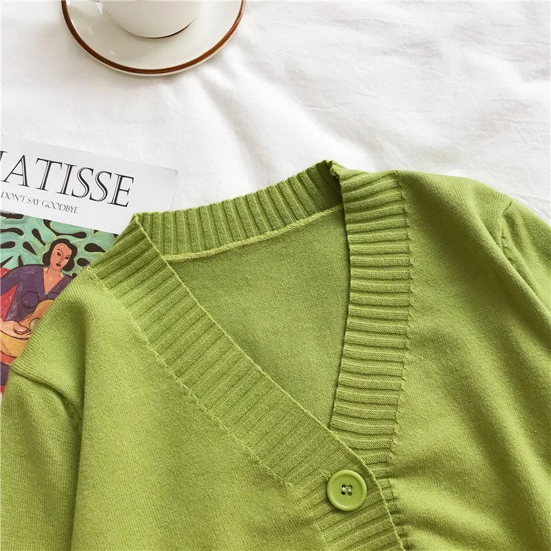 Осенний женский короткий свитер в Корейском стиле, Женский вязаный Укороченный кардиган с длинным рукавом и V-образным вырезом, Женский Повседневный Вязаный Свитер оверсайз