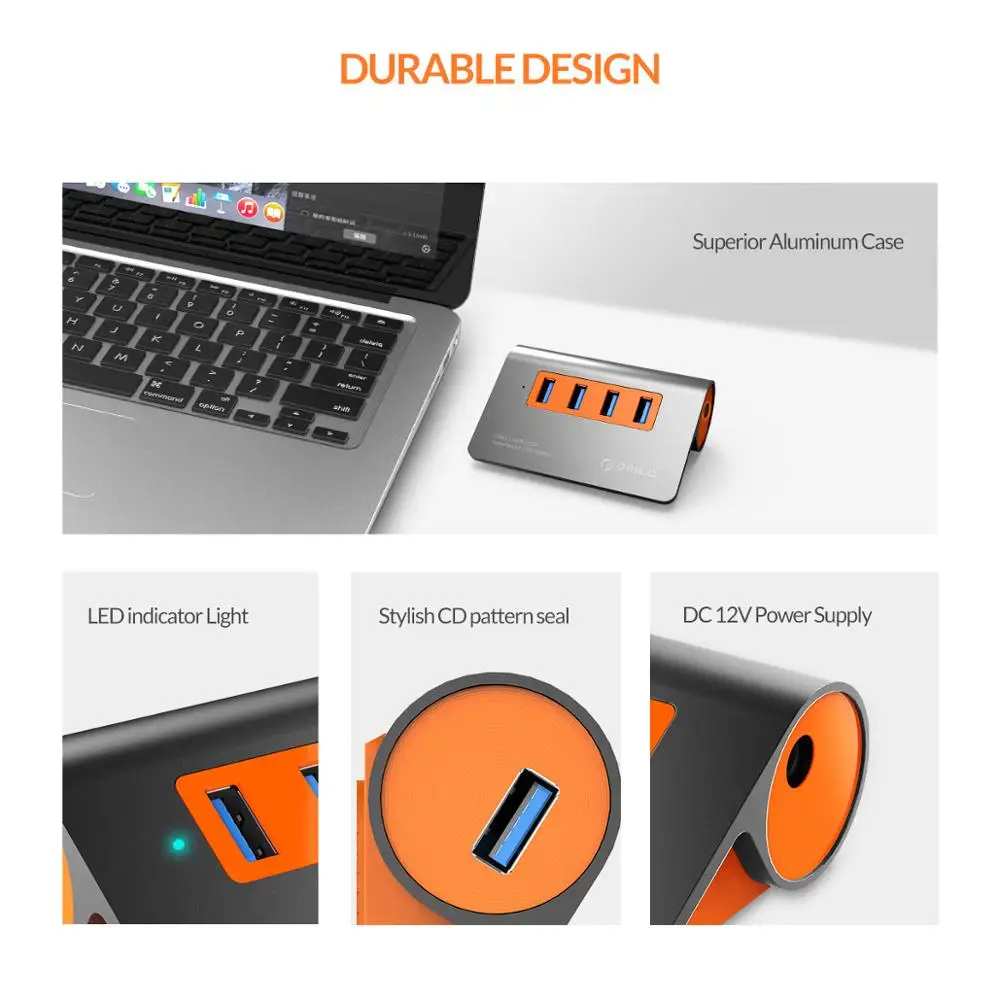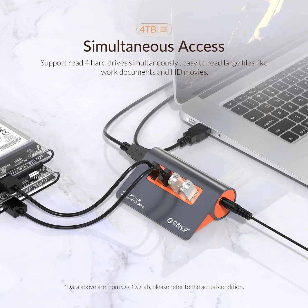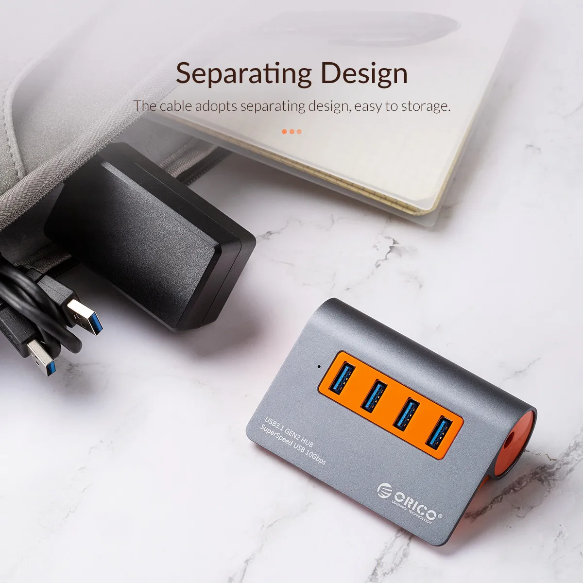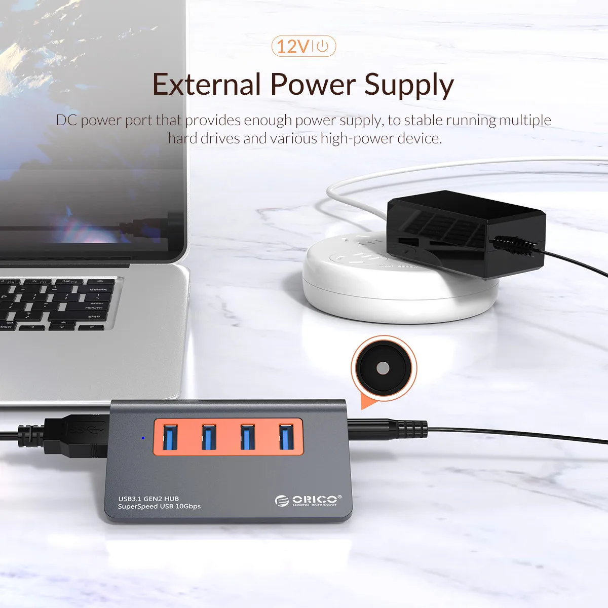 ORICO 4 порта алюминиевый USB3.1 Gen2 10 Гбит/с концентратор с адаптером питания