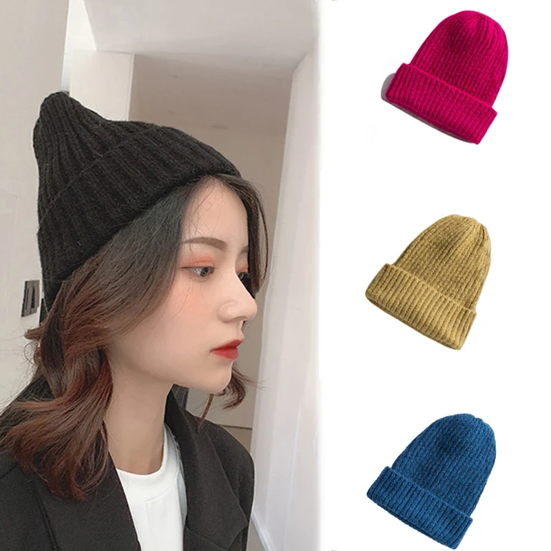 Универсальная шапка Yuppie в Корейском стиле, однотонная шерстяная ...