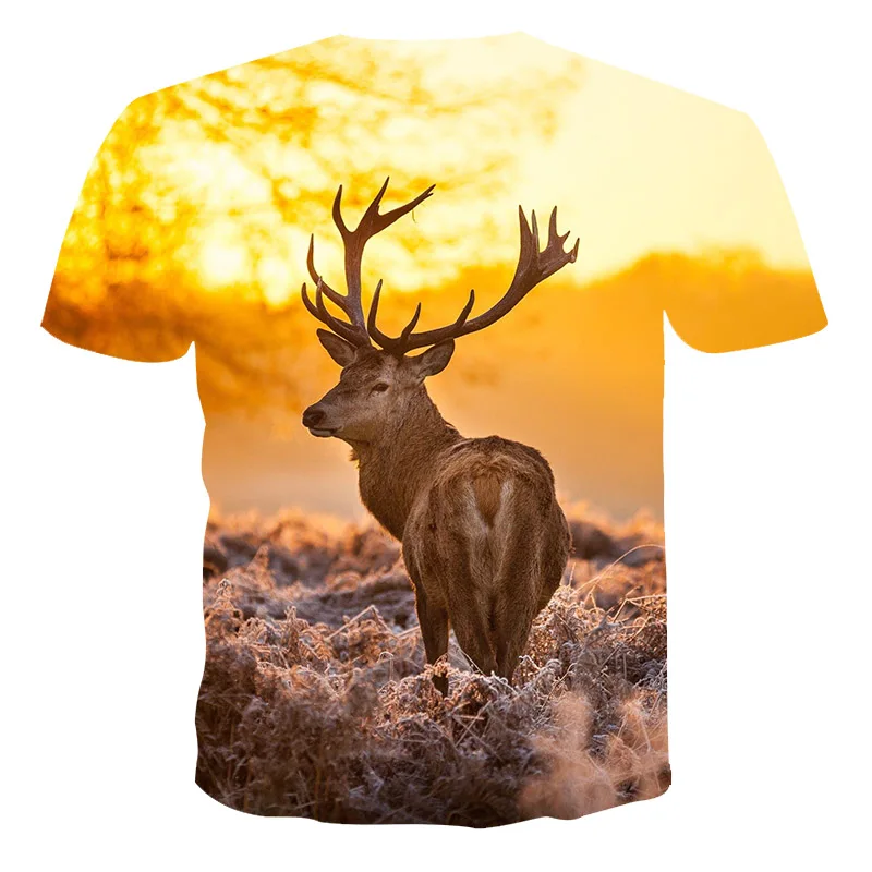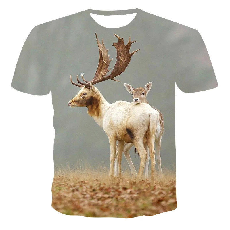 Летняя футболка с 3D-принтом оленя, ЖенскаяМужская футболка для спо...