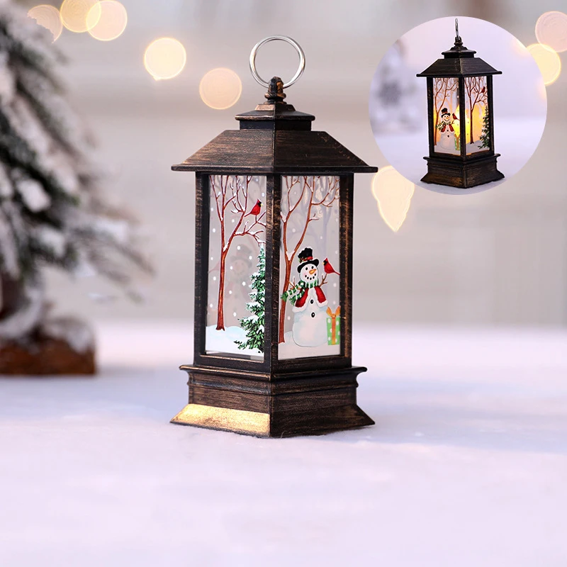 Рождественский Санта-Клаус, фонарь, снеговик, лось, светильник с рождественским пламенем, украшение для рождественской елки, рождественские подарки, новогодний декор для комнаты
