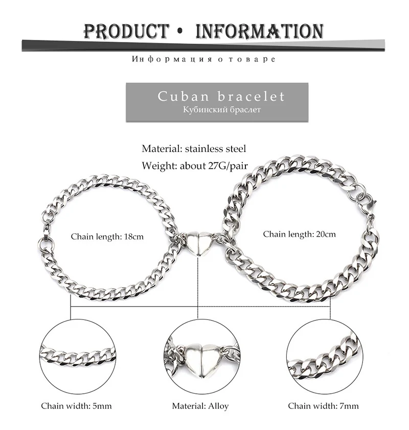 Браслет на магните в форме сердца для влюбленных, браслет-цепочка в...