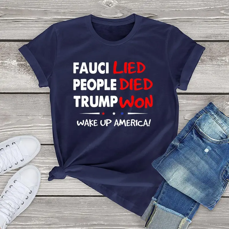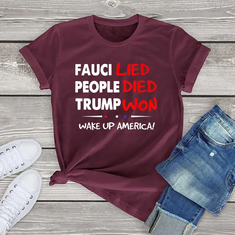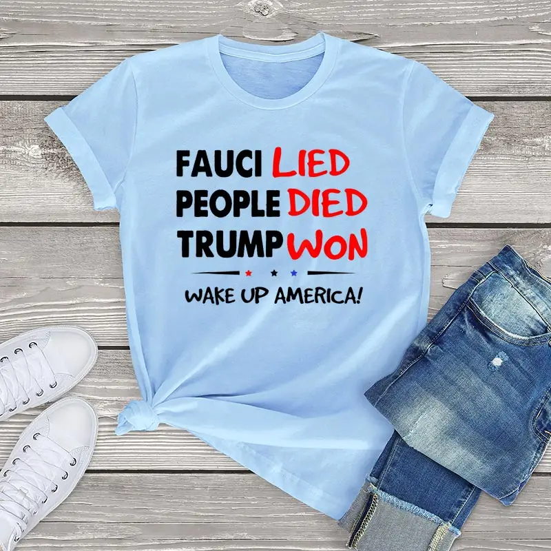 Футболка Fauci Lied People Died Trump Won, женская одежда, женская футболка с принтом «Wake Up America», 90s, унисекс, футболки с короткими рукавами, топы