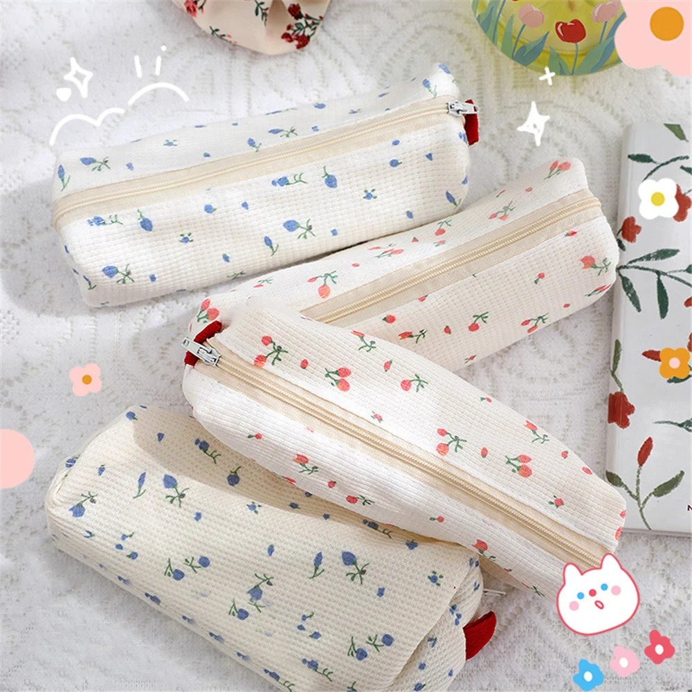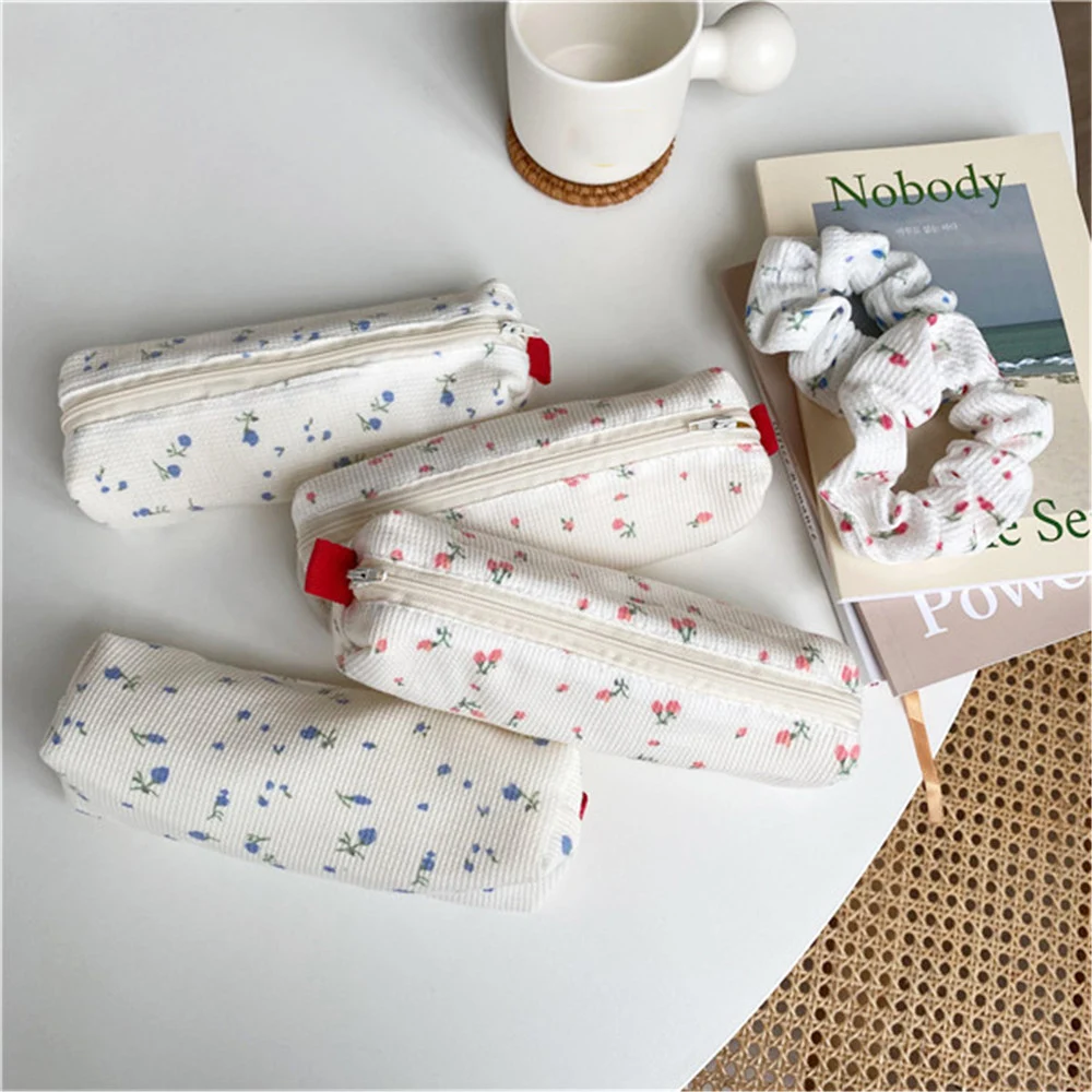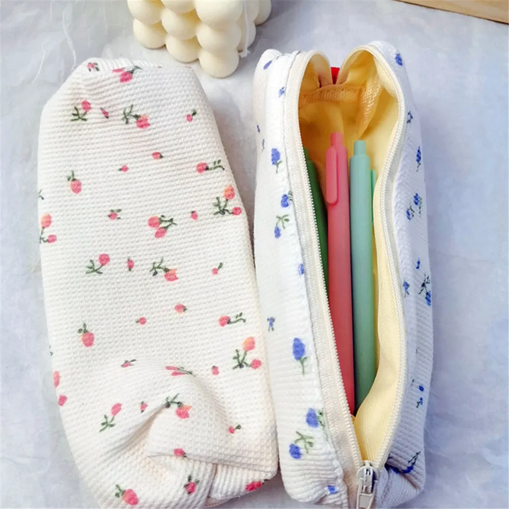 Милый Ins маленький пенал с цветами, милый канцелярский Органайзер, простой портативный мягкий чехол для карандашей, искусственное хранение