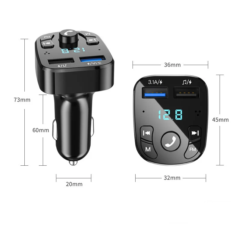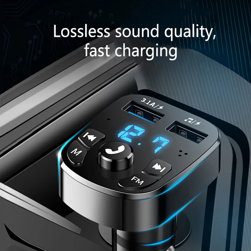 Беспроводной автомобильный FM-трансмиттер с функцией громкой связи, MP3 передатчик, автомобильное зарядное устройство с двумя USB-портами, оснащенное Bluetooth и светодиодным дисплеем