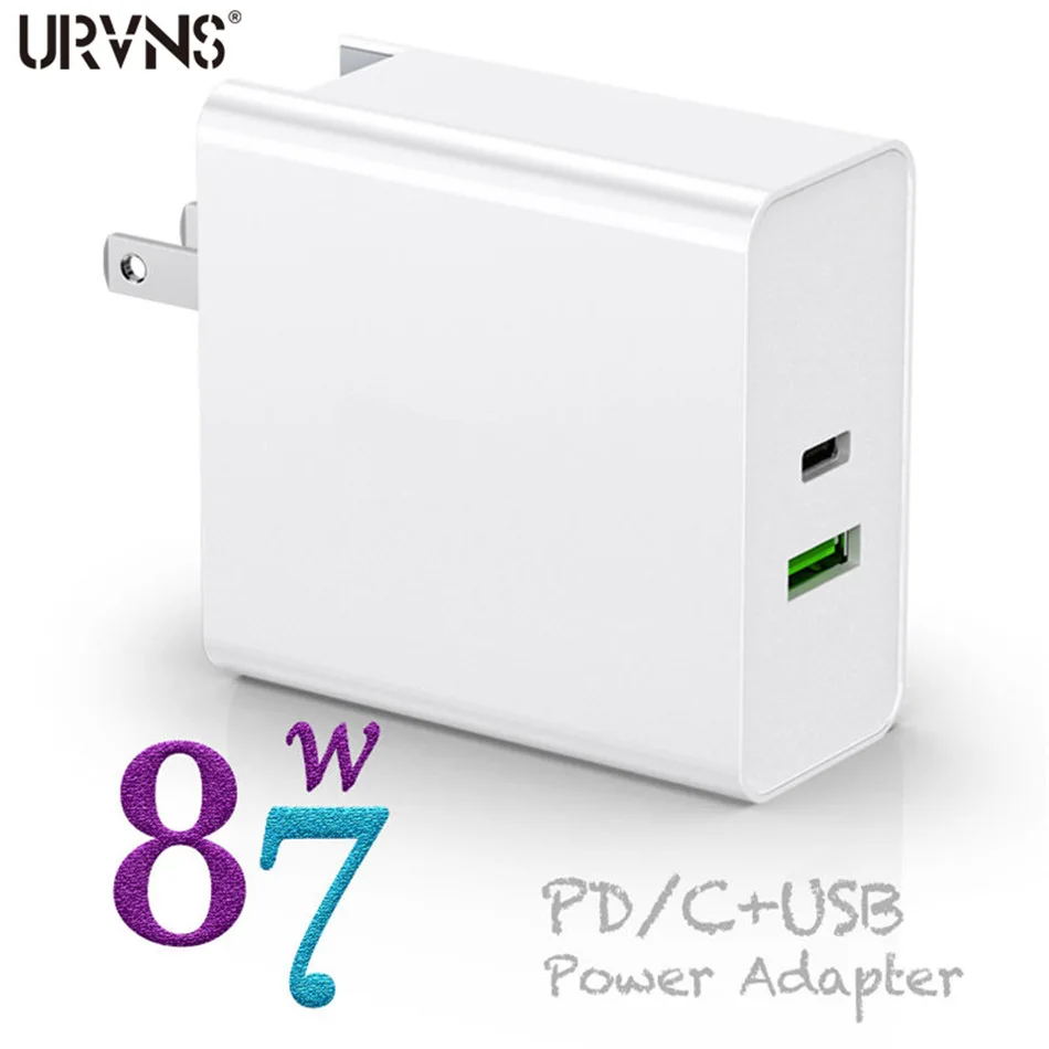 Адаптер питания URVNS на 2 порта, 87 Вт, USB C, PD 87 Вт65 Вт45 Вт20 Вт, зарядное устройство для быстрой зарядки телефона для MacBook, iPad Pro, Xiaomi, Nexus