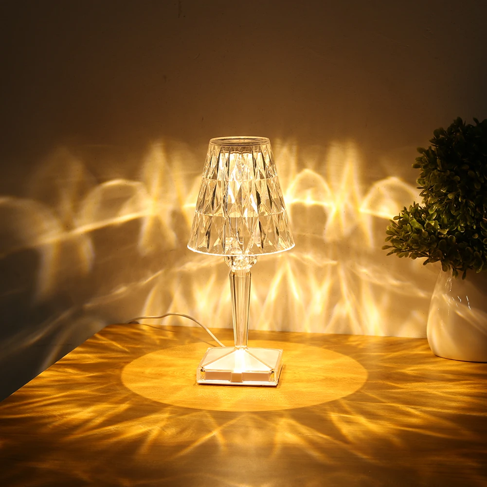 Алмазная настольная лампа, акриловые декоративные светильники с USB-зарядкой, для спальни, прикроватного столика, светильники с кристаллами, подарок, светильник