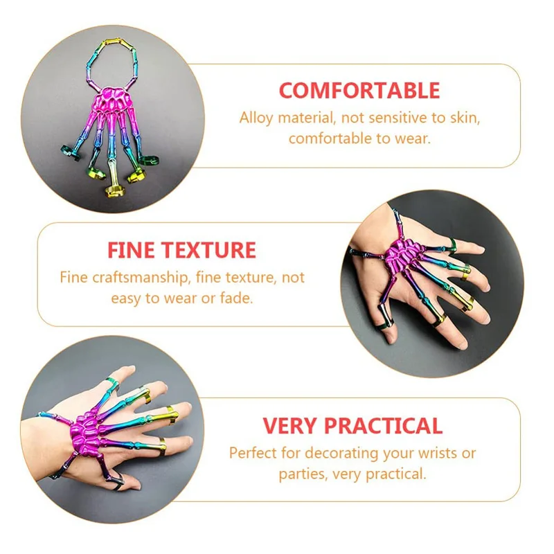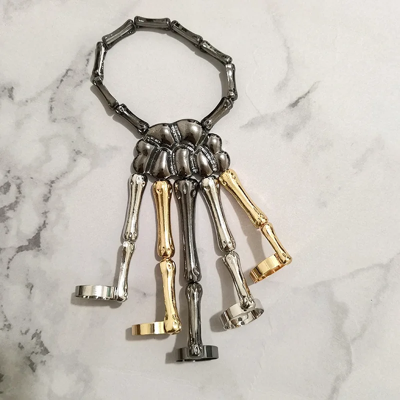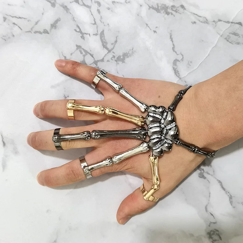 Панк Череп Скелет палец кость очаровательный браслет модная массивная бижутерия для вечеринки Подарки Золотая рука цепочка кольцо браслет для мужчин женщин