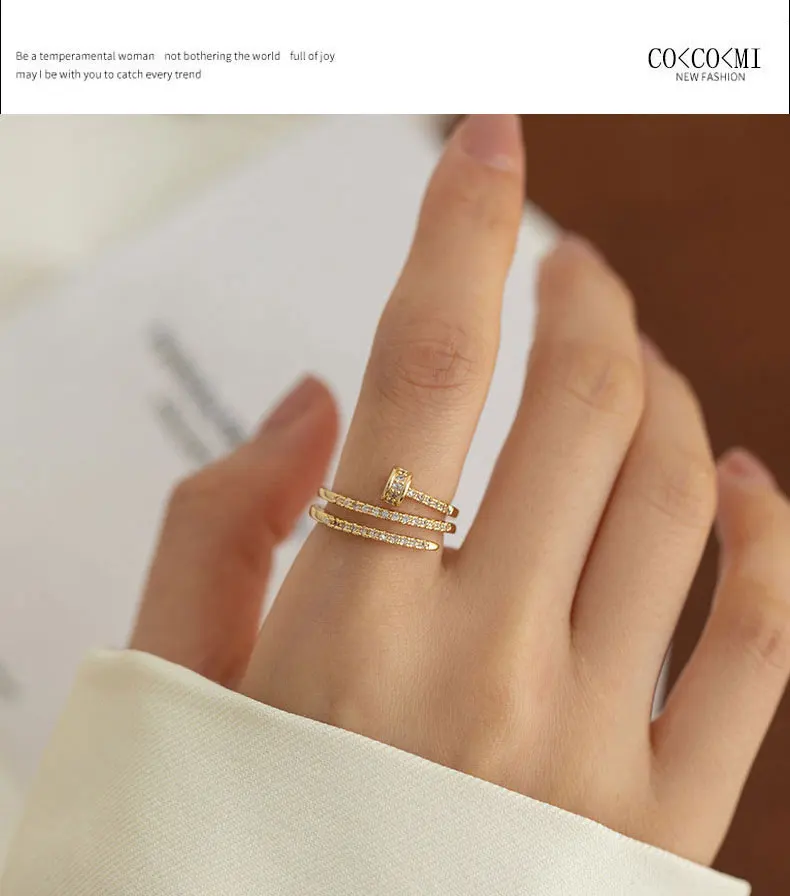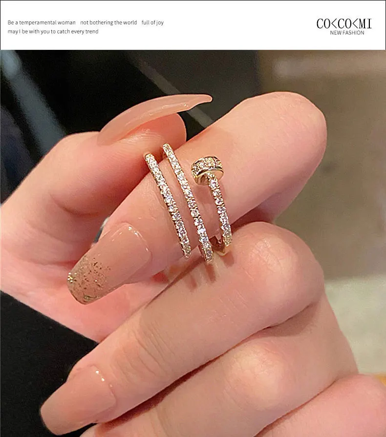 Многослойные Круглые открытые кольца с инкрустацией Стразы для женщин, корейская мода, очаровательные женские свадебные кольца, классические кольца для вечеринок