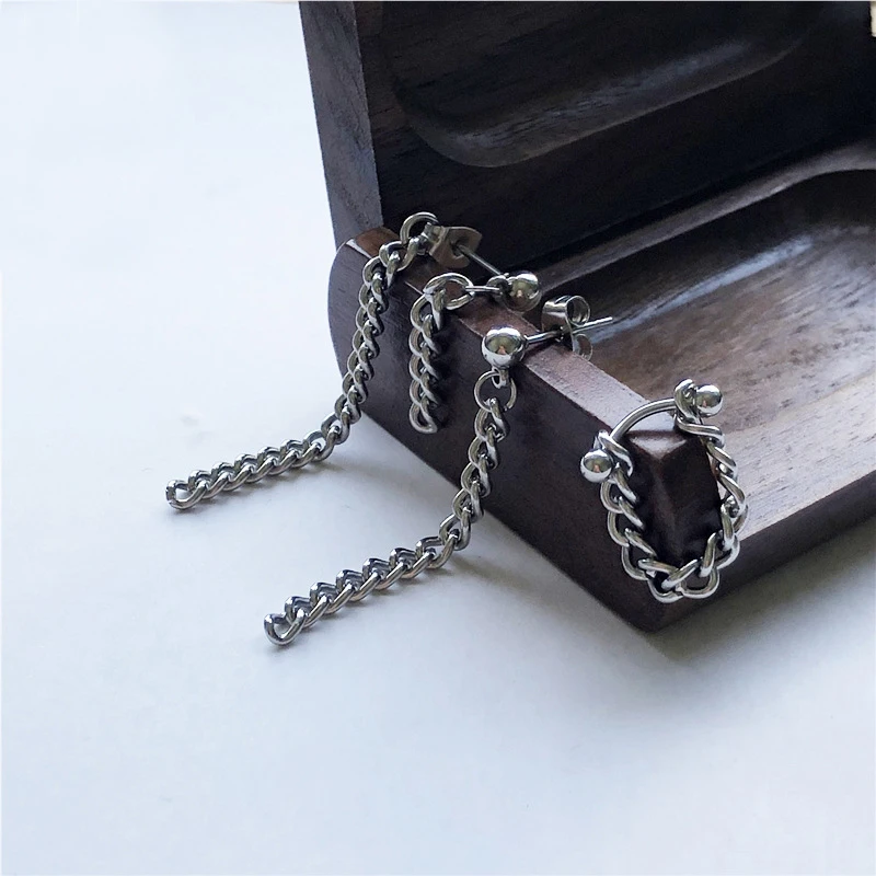 Минималистичные серьги-цепочки из нержавеющей стали в стиле панк, геометрические ретро круглые серьги с кисточками для женщин и мужчин, очаровательные модные украшения для ушей