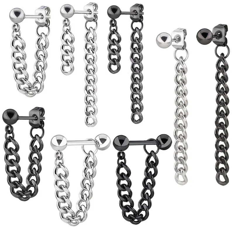 Серьги-подвески в стиле панк UVW041, длинная цепочка из хирургическ...