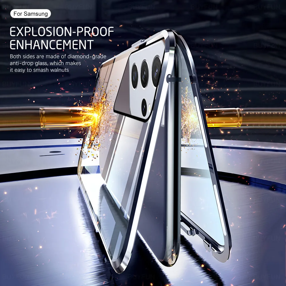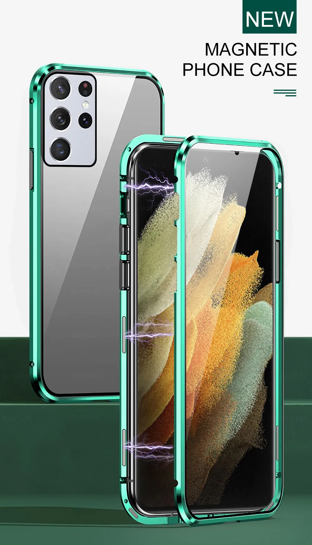 Магнитные Металлические двухсторонние Чехлы для Samsung Galaxy S21, ультрастеклянный чехол для телефона A52, A32, A22, A72, A12, A21s, A51, A71, S20, S30, FE Plus