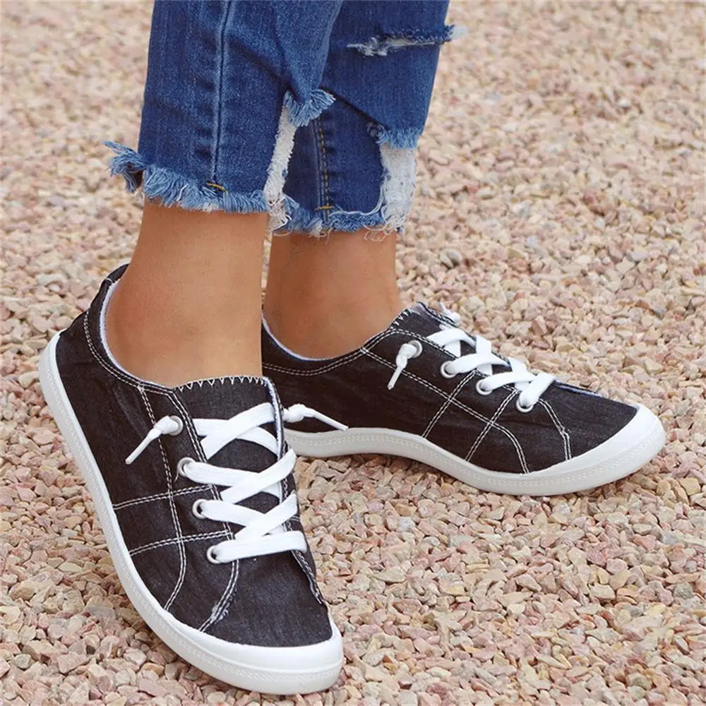 Женские повседневные туфли, кружевная модная однотонная обувь на пл...