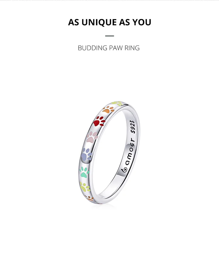 Женское кольцо из серебра 925 пробы, с радужным сердцем и ЛАПКОЙ