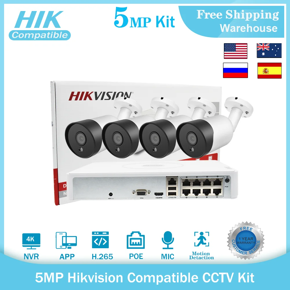 Hikvision совместимая с 4K система видеонаблюдения Комплект 5MP IP цилиндрическая камера со встроенным микрофоном IR 8MP Hikvision оригинальный Сетевой видеорегистратор DS-7108NI-Q18P 8CH POE