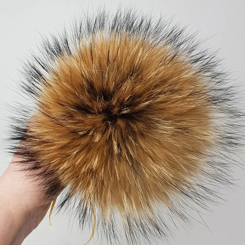 Большие пушистые Помпоны из натурального меха лисы с кнопкой шарики из меха енота сделай сам помпоны из натурального меха помпоны для шарфов шапок аксессуары