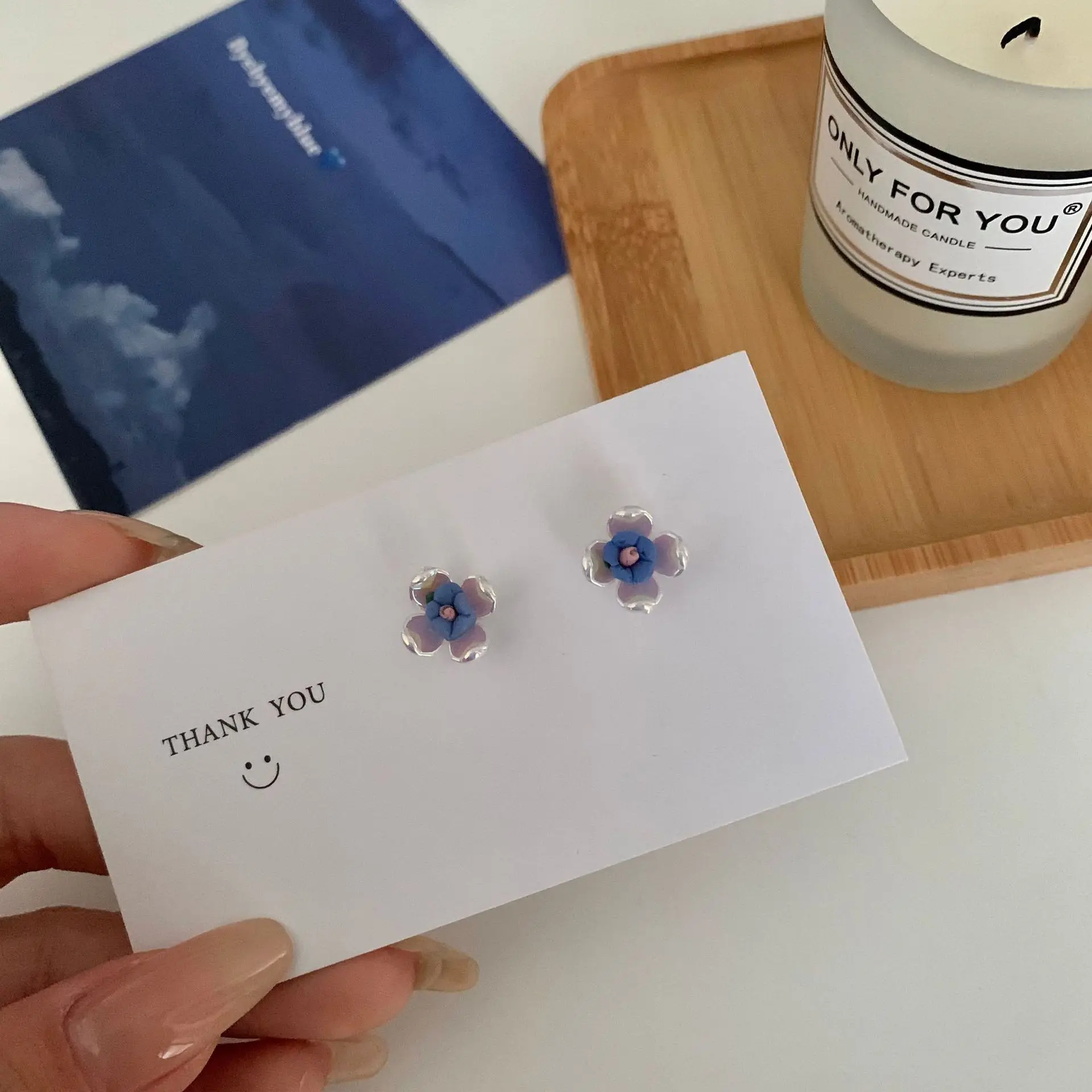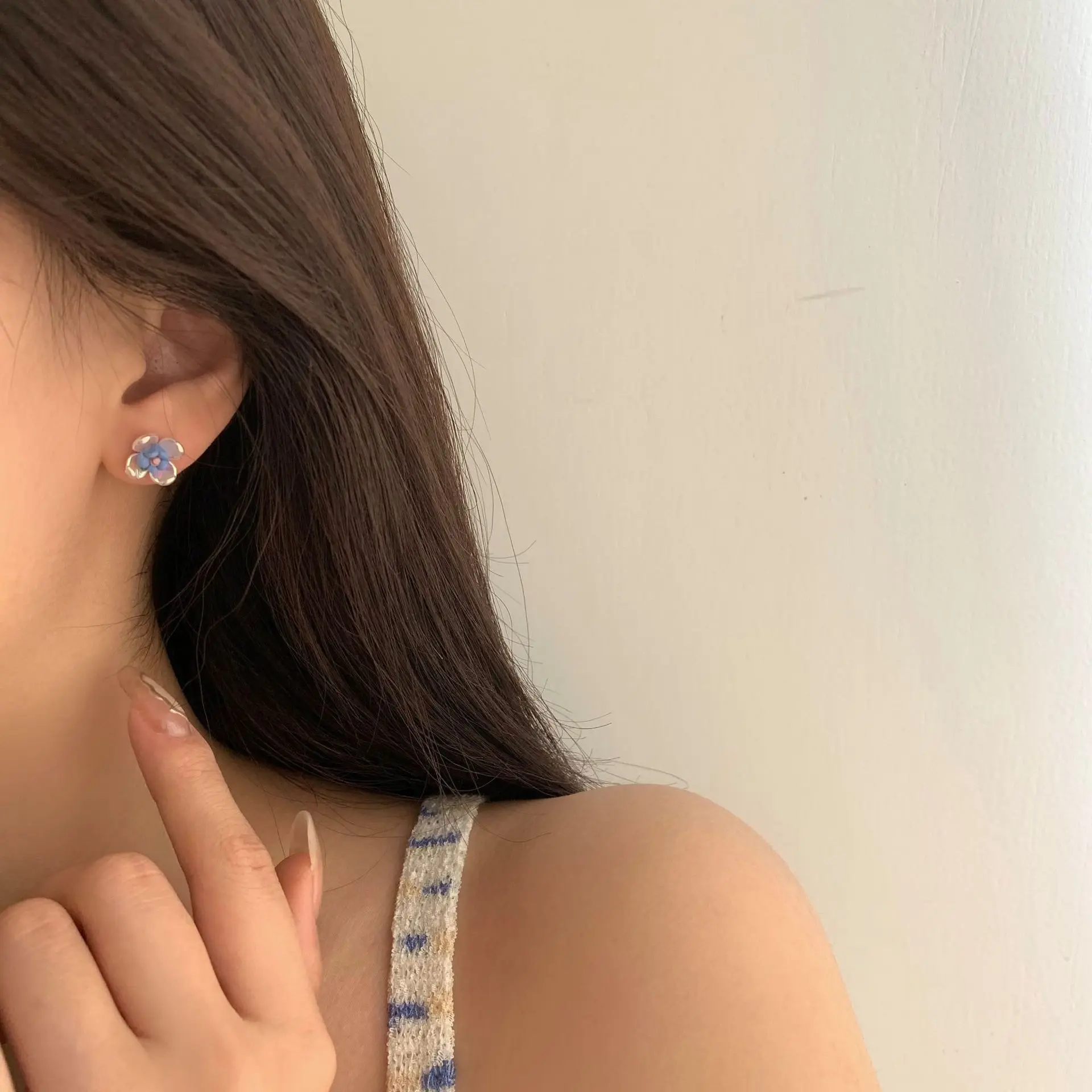 Женские акриловые серьги-гвоздики S925, в виде цветка